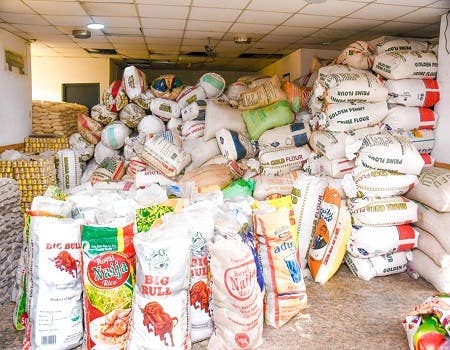 The items include; 5 bags of 50kg of rice, 5 cartons of peak milk, clothes and 20 pieces of wrappers.