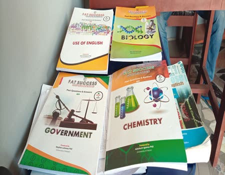 Stationed on the plastic table beside where I sat were four editions of the FAT Success UTME Reloaded past questions Olonisaye and other scholars co-produced for students in preparation for the promotional and certificate examinations such as West African Secondary School Certificate Examination (WAEC), National Examination Council (NECO) and Joint Admission and Matriculation Board (JAMB) which millions of Nigerians have continued to fail every year.