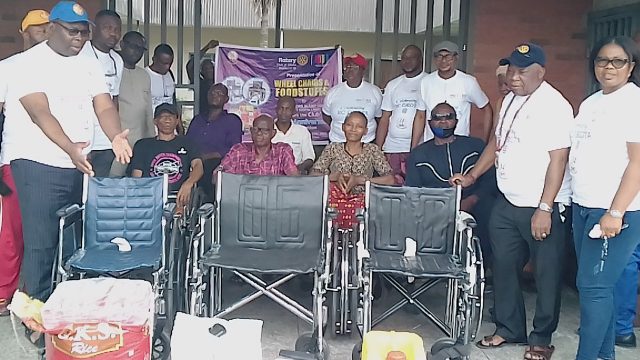 To mark its 34th anniversary, Rotary Club of Okota has donated food items and wheelchairs to the Spinal Cord Injury Home, Amuwo Odofin.