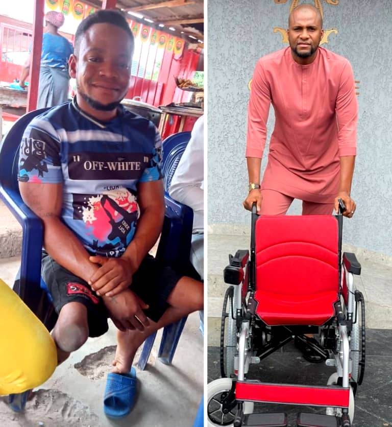 Meanwhile, in a post via his Facebook page, the Abia born billionaire businessman and philanthropist disclosed that he, alongside his friends and associates at Chima Anyaso Mandate (CAM) raised some funds to purchase a motorized wheelchair to enable him become more active and productive and also made a cash donation of N400,000 to help his business.