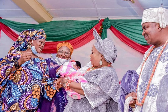 While responding, the Alapomu of Apomu Oba Adenekan Afolabi and his Olori Janet Mba Afolabi who could not hide their feelings appreciated the kind gesture of Mrs Oyetola over Labake and pledged their unflinching support to take proper care of the girl and her new baby as their child.