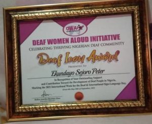 The “Deaf Icon Award” was awarded the tireless publisher in recognition of his outstanding contributions to the development of the Deaf community in Nigeria.