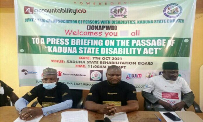This was disclosed in a press briefing by the JONAPWD, Kaduna State Chairman, Suleiman Abdulazeez, on passage of Kaduna State Disability Bill into an Act..