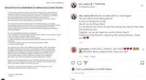 Reacting to this, Obi Cubana, in a post shared on his Instagram page, described Davido as a king who would always be a king reaffirming the famous saying of the singer that ‘We rise by lifting others’.