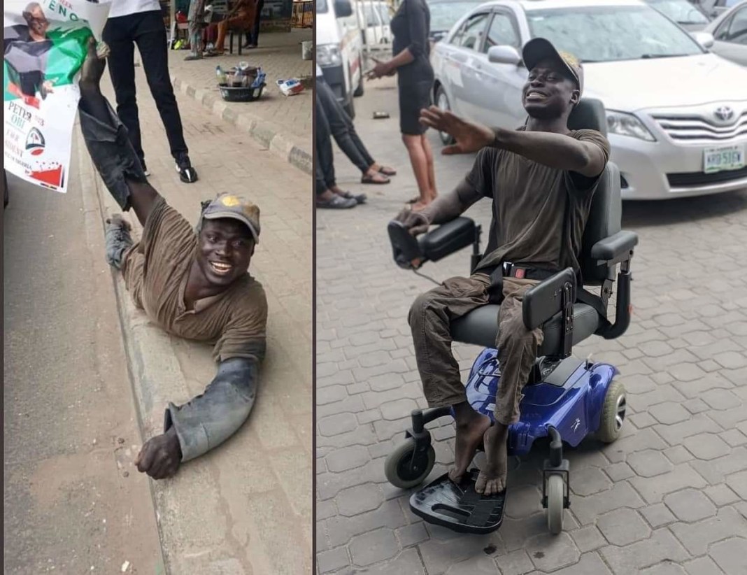 An unnamed man with physical Disability has been rewarded for his open support for the presidential bid of the Labour Party Presidential candidate, Mr Peter Obi.