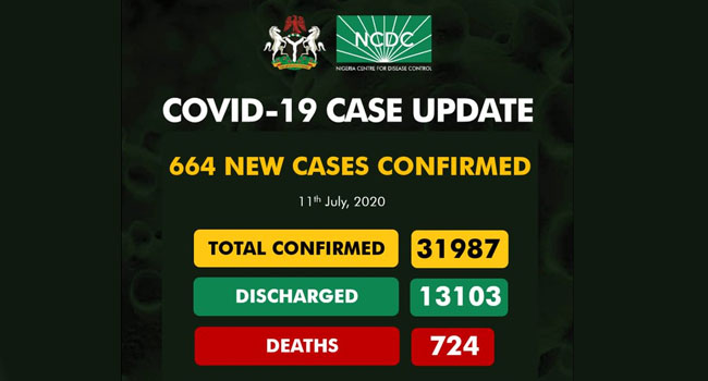With 664 new infections, the number of COVID-19 cases in Nigeria has risen to 31,987.