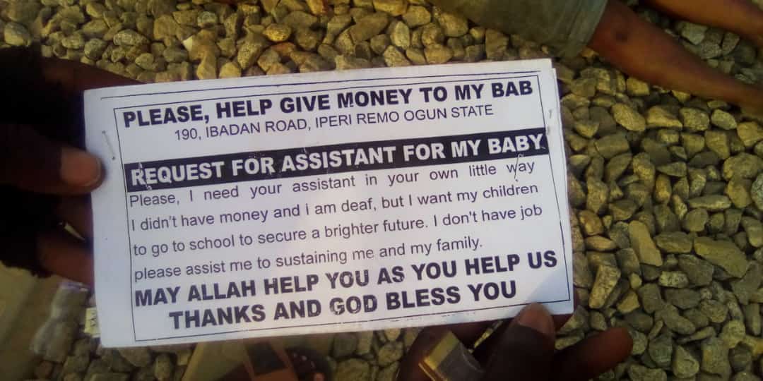 It was discovered from the inscription at her hand that she was deaf which made her stationed herself within the neighbourhood to beg for alms from people for survival.
