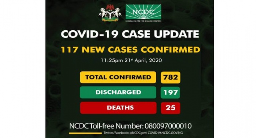 Nigeria on Tuesday saw her COVID-19 cases leaing to 782.