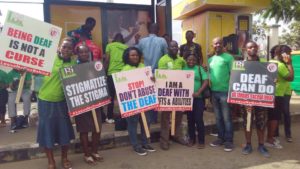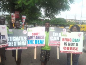 The Deaf community in Nigeria marked international week of the deaf on Saturday, 23 September, 2017. The annual event occurs from 18th September to 24th synchronously all around the world. The theme for this year in Abuja reads “Full Inclusion with Sign Language”. In Lagos, it reads “Walk against Discrimination of the deaf”. It was learned that the walk was to create awareness for the deaf community in Nigeria, eliminate discriminations and create inclusion for the deaf in Nigeria.