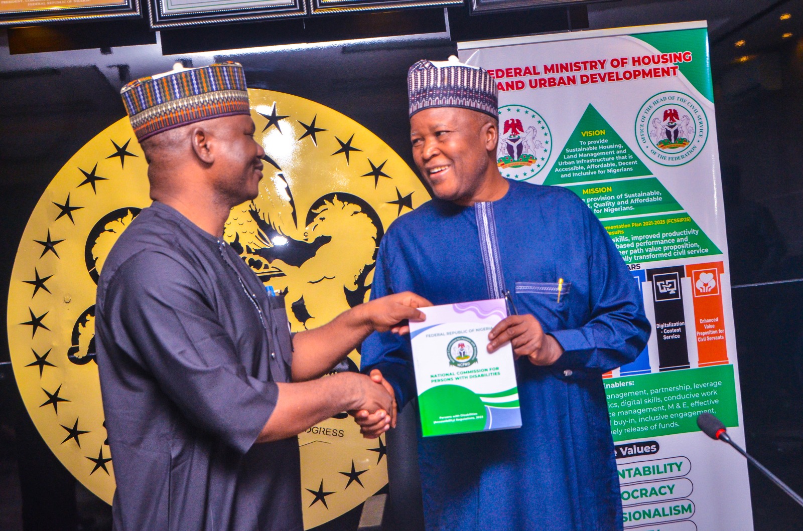 In a bid to provide accessible and affordable Housing Units for Persons With Disabilities across Nigeria, the Executive Secretary, National Commission for Persons With Disabilities, Dr. James David Lalu in his usual inclusive advocacy, presented copies of the Accessibility Regulations to the Honourable Minister, Federal Ministry of Housing and Urban Development, Architect Ahmed Musa Dangiwa recently in Abuja.