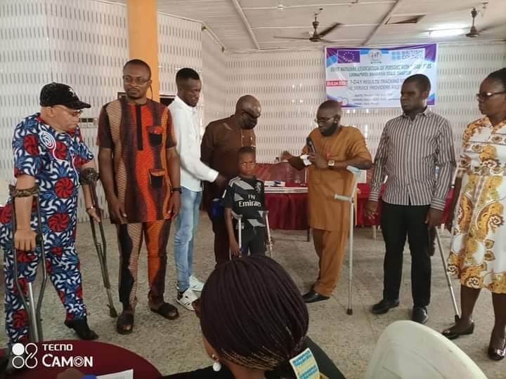The story of the boy began to change when Comr. Ugochukwu Okeke, the chairman, the Joint National Association of Persons with Disabilities (JONAPWD) Anambra State chapter saw the post on the Facebook and demand to see the boy for proper assessment and Mr Dibor who has determined to render help to the child brought him to JONAPWD Anambra State Secretariat on April 1st 2021 where Comr. Okeke Ugochukwu discovered that the immediate intervention the boy needs are a pair of armpit clutches and a school bag. He immediately consulted with the Exco members of the Association and got approval to provide the items to assist the child which was to the Glory of God a school bag and a pair of armpit clutches were provided during the association’s one day result tracking meeting with MDAs and relevant Service Providers on their commitments towards the implementation of Disability Rights Law 2018 at Choice hotel Awka yesterday 15/4/21.