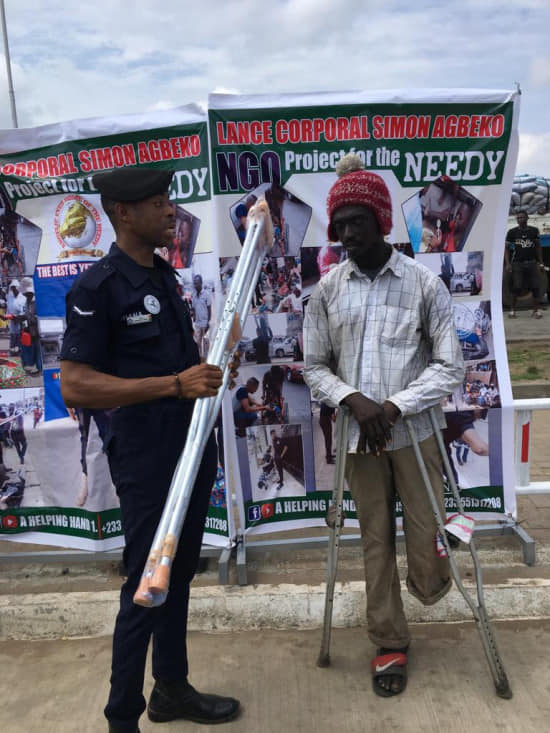 He is an officer who has devoted himself and donates pair of crutches to the physically challenged persons on the street of Accra, as one of his endeavours to help the needy in the society.